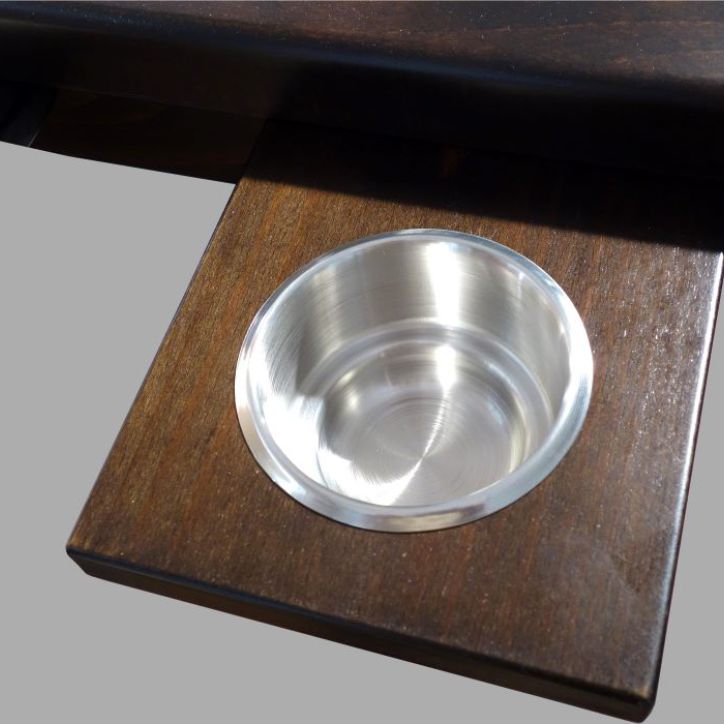 Abnehmbare Deckplatten aus Holz bilden die obere Tischebene.