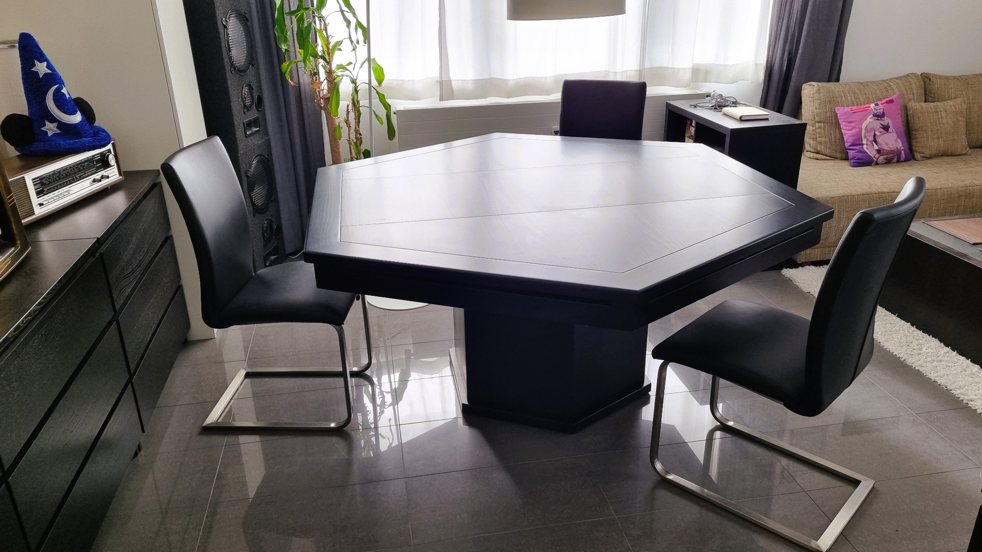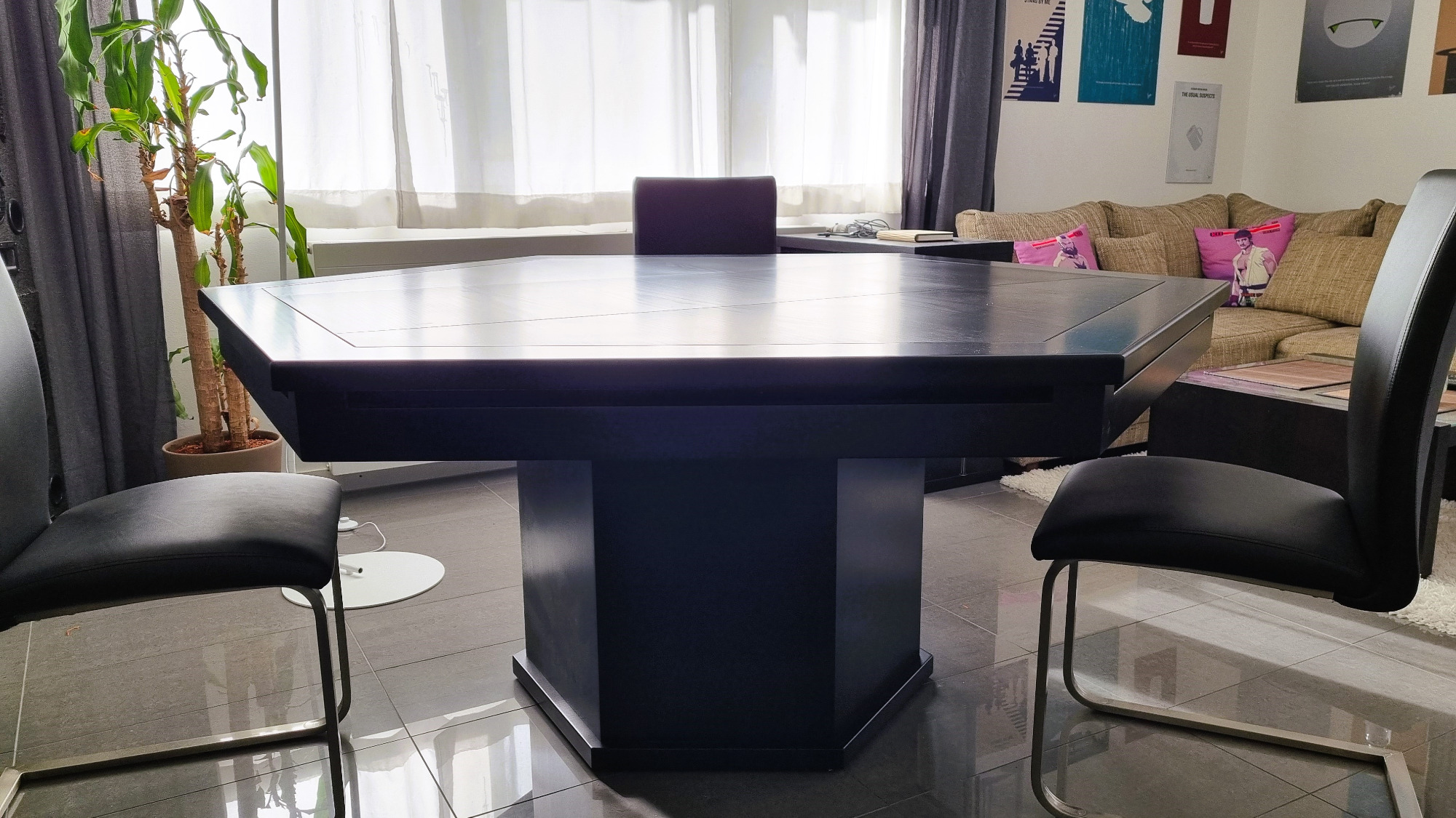 Wir beraten Sie und schicken Ihnen Muster zu. In unserer Werkstatt oder auf der SPIEL können Sie sich die Tische anschauen.